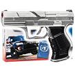Policejní pistole z edice Gold edition – kovová, stříbrná, na kapsíly – 8 ran. Velikost pistole 19,5×12,5. Kovová hlaveň, plastová rukojeť. Vyrobeno ve Španělsku.